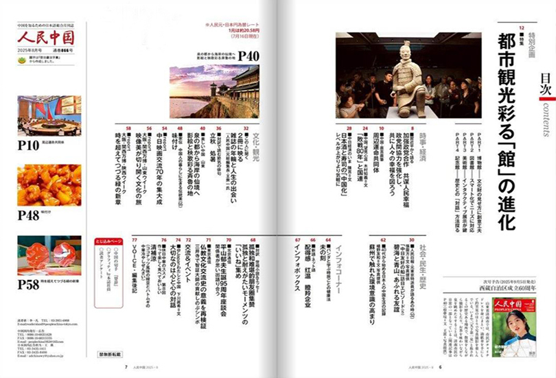 《人民中国主要栏目:特辑、中国的世界文化遗产、专题报道等。