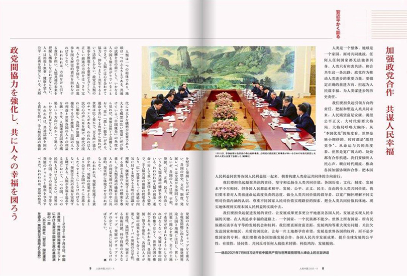 《人民中国》杂志是一本专注于反映中国国情和中国特色社会主义发展的综合性理论期刊,旨在全面展示中国发展的伟大成就、中国模式的成功经验以及中国特色社会主义道路的理论创新。杂志拥有一支高水平的编辑团队,由知名学者、专家和业界精英组成。该团队在国内外享有较高的声誉和影响力,他们的文章和研究成果常常成为中国发展领域的重要参考资料。